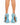 The sky high disco heels are a work of wearable art for you cosmic creatures. Made with an eye catching blue glitter PVC and embellished with glow in the dark stars, they are here to take you to outer space.