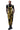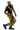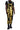 The adjustable straps are made from lined gold PVC fabric with rainbow metal buckles.